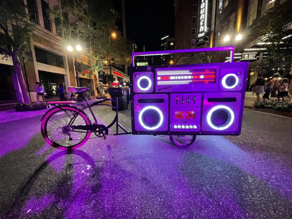When the pandemic hit and we couldn't get together indoors for big events, we brought the party outside with our giant mobile boombox bike!
