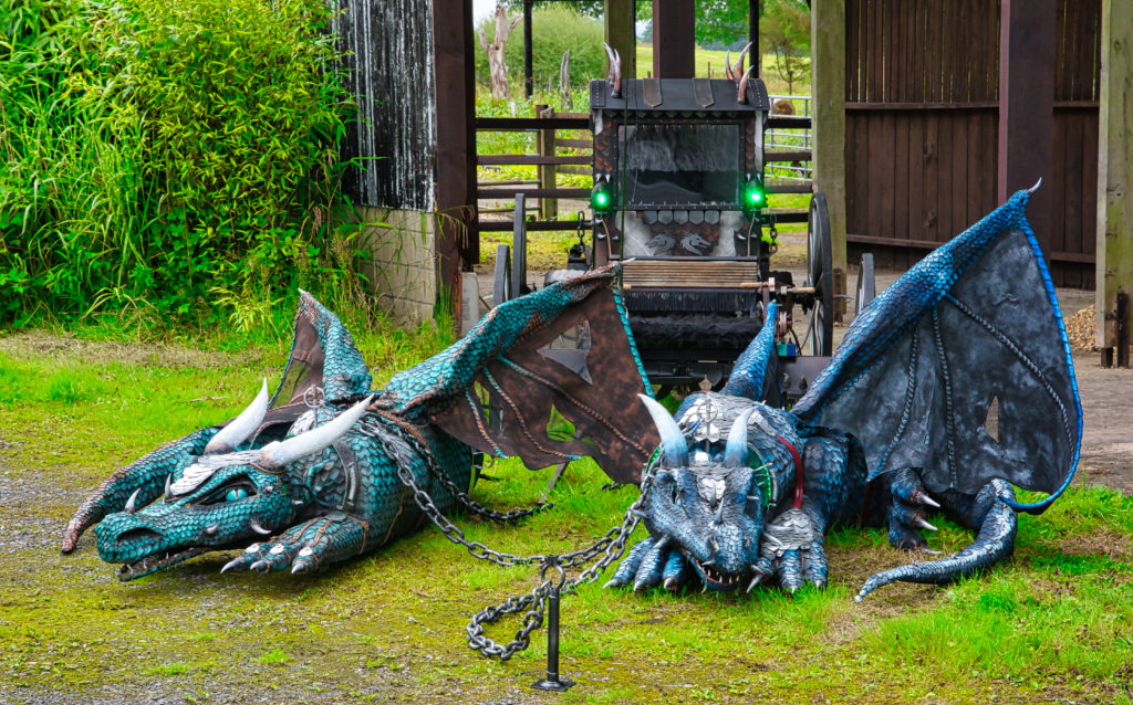 Dragon Central - an interactive educational display, for events. Stardust and Steel are two 'baby' dragons, each over 2.4m long, pulling the Evil witch Fortuna’s carriage. Kids can learn about animatronics and how to make monsters move!