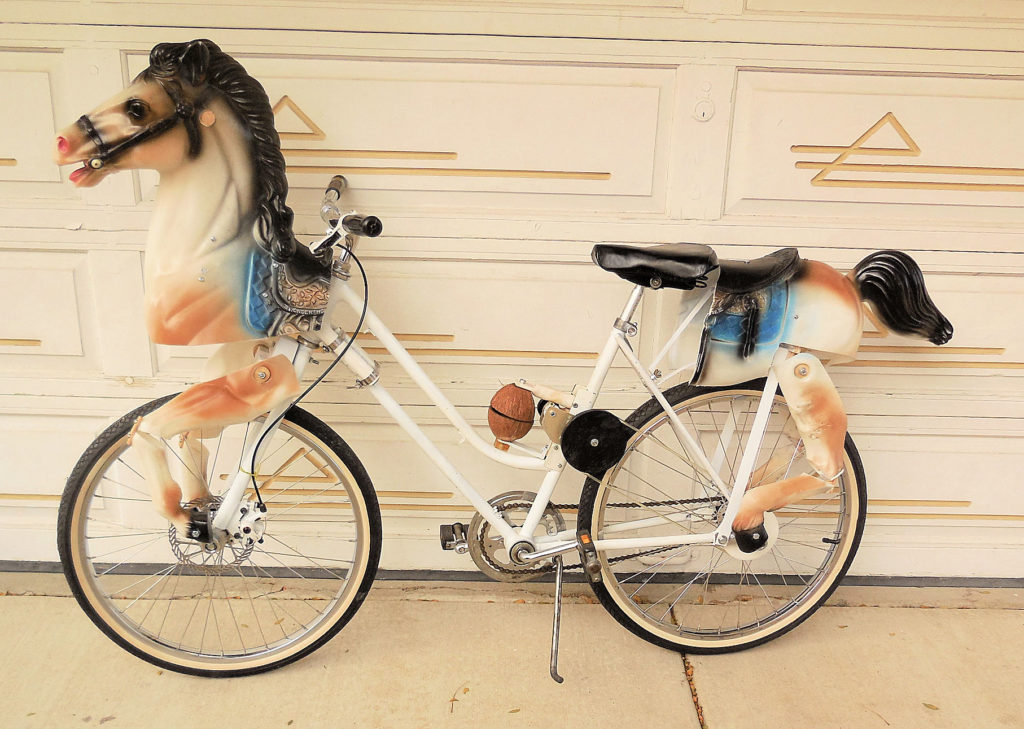 Creat a Bike with eccentric wheels and a horse body with moveable legs and a sound clopping device.