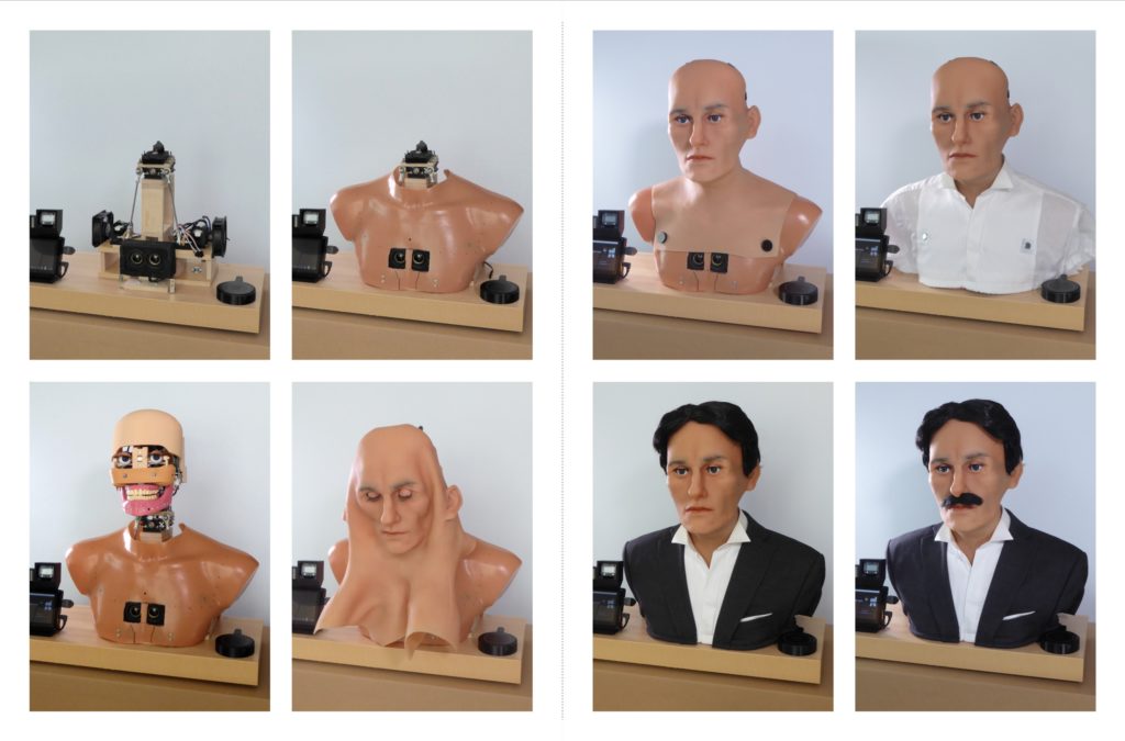 The bust is moved by servo motors. Many parts, such as the eyes, are 3D printed.