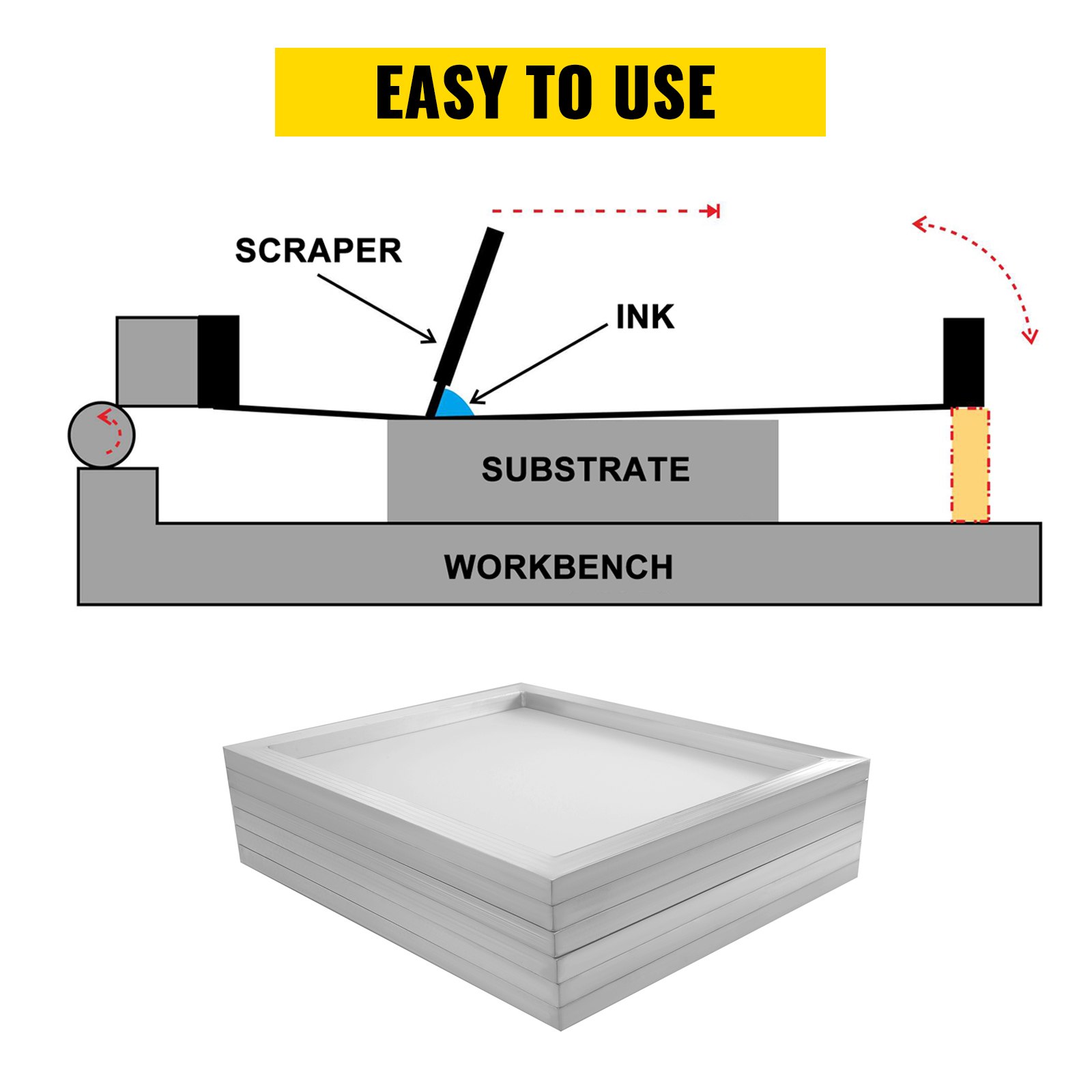 - Easy Operation: Can quickly achieve screen printing with ink and a scarper. After use, the screen printing screen can be cleaned by a screen washing agent, and it can be reused repeatedly.