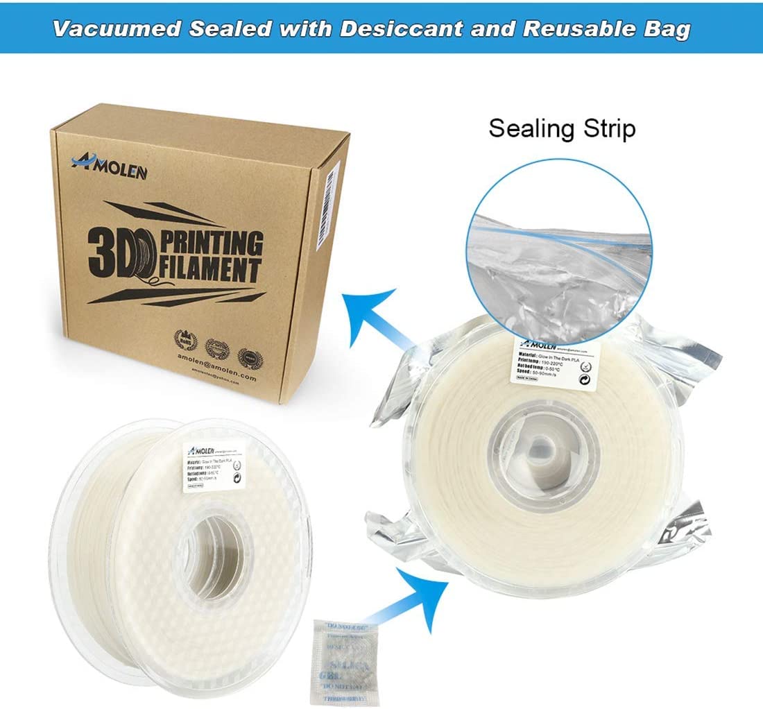 UPGRADE GLOW FILAMENT - AMOLEN Specializes in researching Glow in the Dark Filament, using the most advanced Glow materials, PLA raw materials come from USA. All the glow filaments on the market are a bit brittle, please print with patience and keep the angle smooth when feeding
