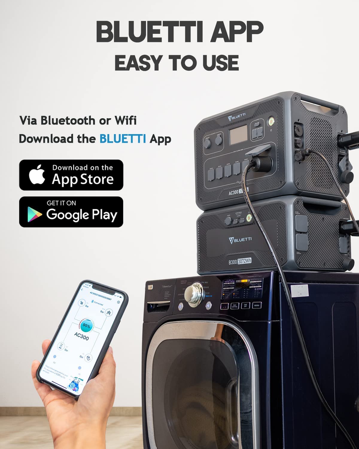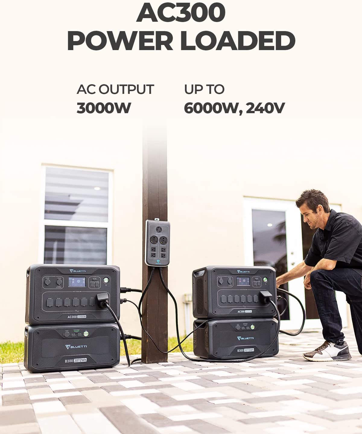 - Massive 6144Wh Capacity: BLUETTI AC300 is 100% modular and expandable to a total capacity 6,144Wh with 2×B300 battery packs. It's sure to meet your power needs during emergency or power outages.