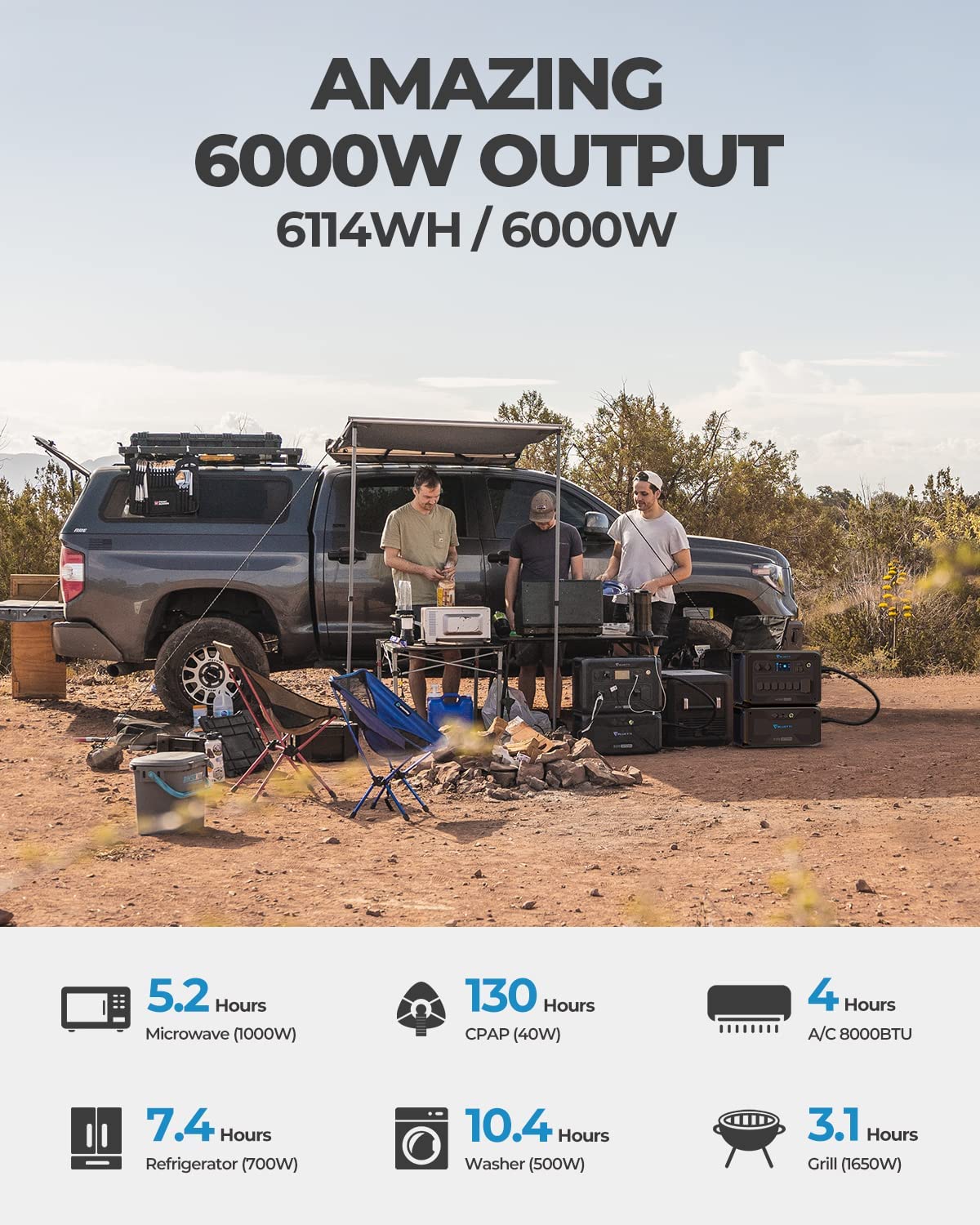 BLUETTI Expandable Portable Power Station, 2*AC300 and 2*B300 6000W/6144Wh