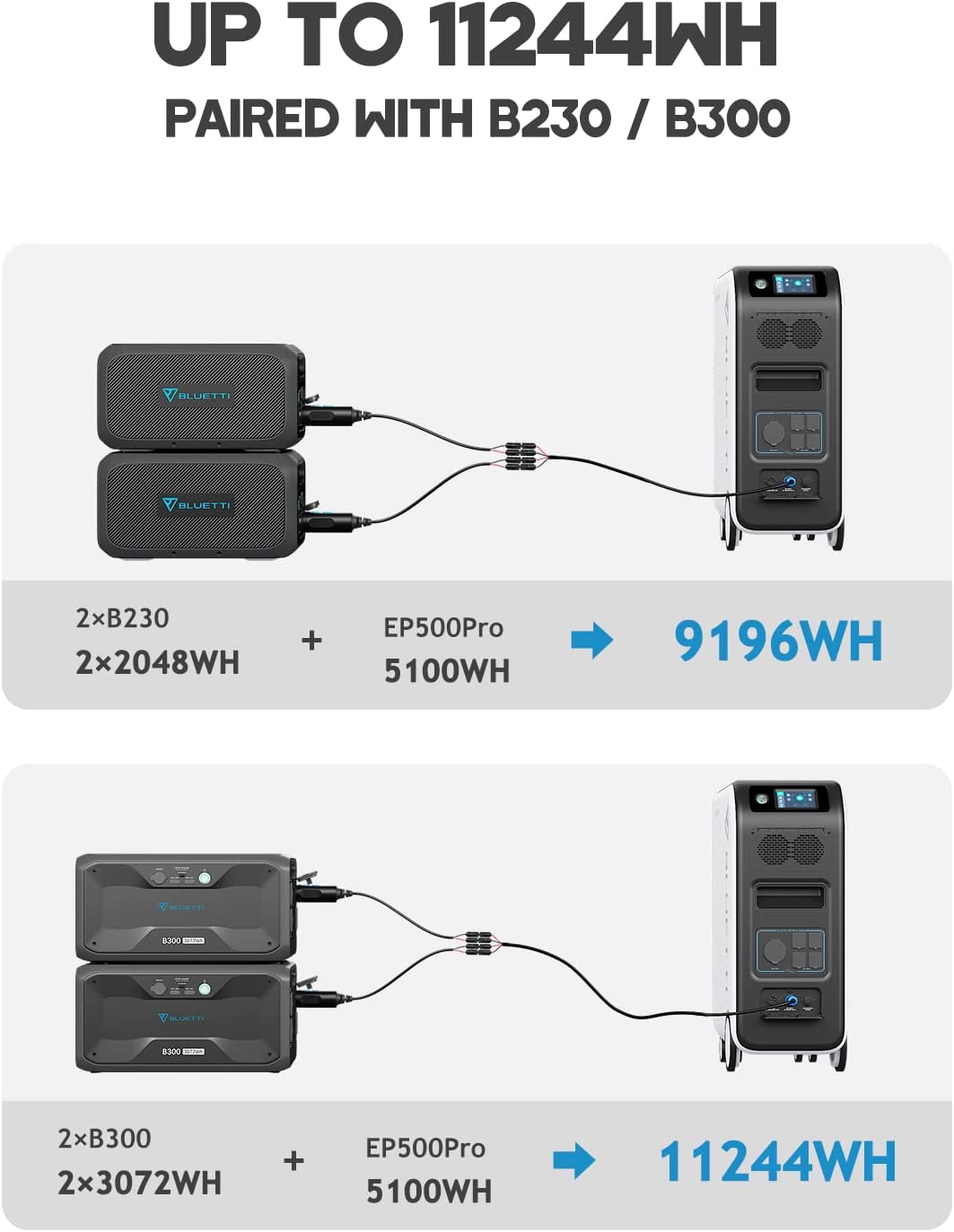 - What You Get: BLUETTI EP500Pro power station, 3 x 350-watt solar panels, AC charging cable, PV charging cable, user manual, 5-year warranty, and friendly local / online customer service.