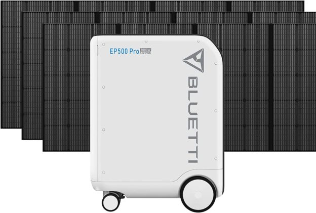 - What You Get: BLUETTI EP500Pro power station, 3 x 350-watt solar panels, AC charging cable, PV charging cable, user manual, 5-year warranty, and friendly local / online customer service.