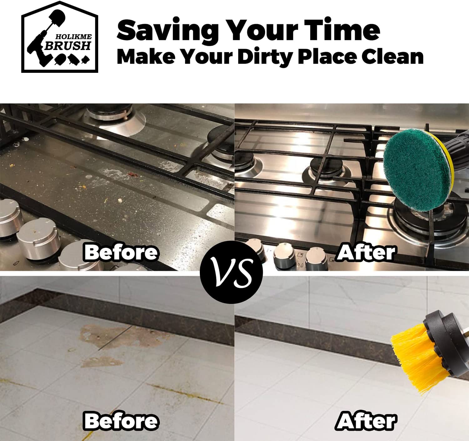 - Time Saving: Get tired of the boring household cleaning? Try Holikme Power Scrubbing Drill Brush Cleaning brushes and Scouring Pads that attach to any cordless drill or impact driver, become a powerful cleaning tool. Get stubborn cleaning jobs done faster and achieve a deeper clean, definitely a good partner for your household cleaning. (DRILL IS NOT INCLUDED)