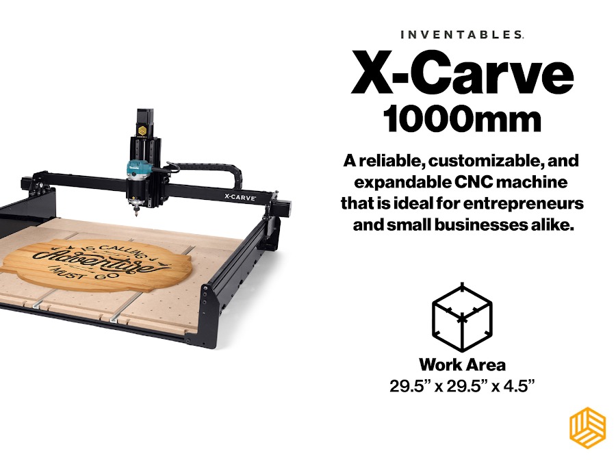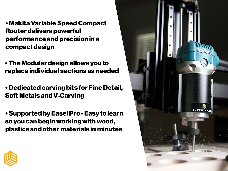 The X Carve 1000mm from Inventables is a desktop CNC Machine powered by the Makita Variable Speed Compact Router (RT0701C). Capable of cutting your designs from wood, plastic, and soft metals. Compatible with 1/8" and 1/4" router bits, the X-Carve 1000mm is ready to tackle your next project.