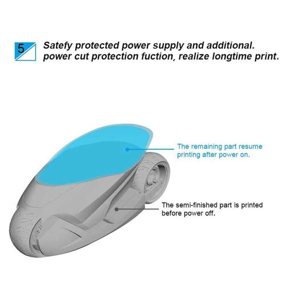 - Safety Protected Power Supply: Only needs 5 minutes for hot bed to reach 110 degree.