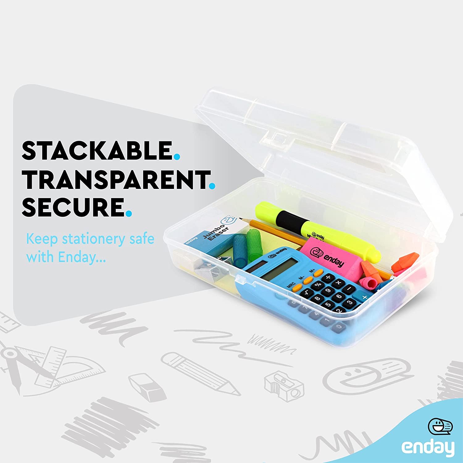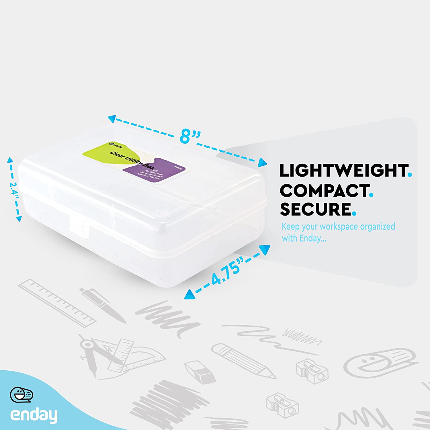 - DESIGN: The clear box help students and teachers organize and meticulously transport pencils and other supplies. The multipurpose plastic case features a quick snap lid which keeps the inside contents secure. Simply press the latch down toward the case for the mechanism to lock. They come designed to be stacked and are deep to hold a lot.
