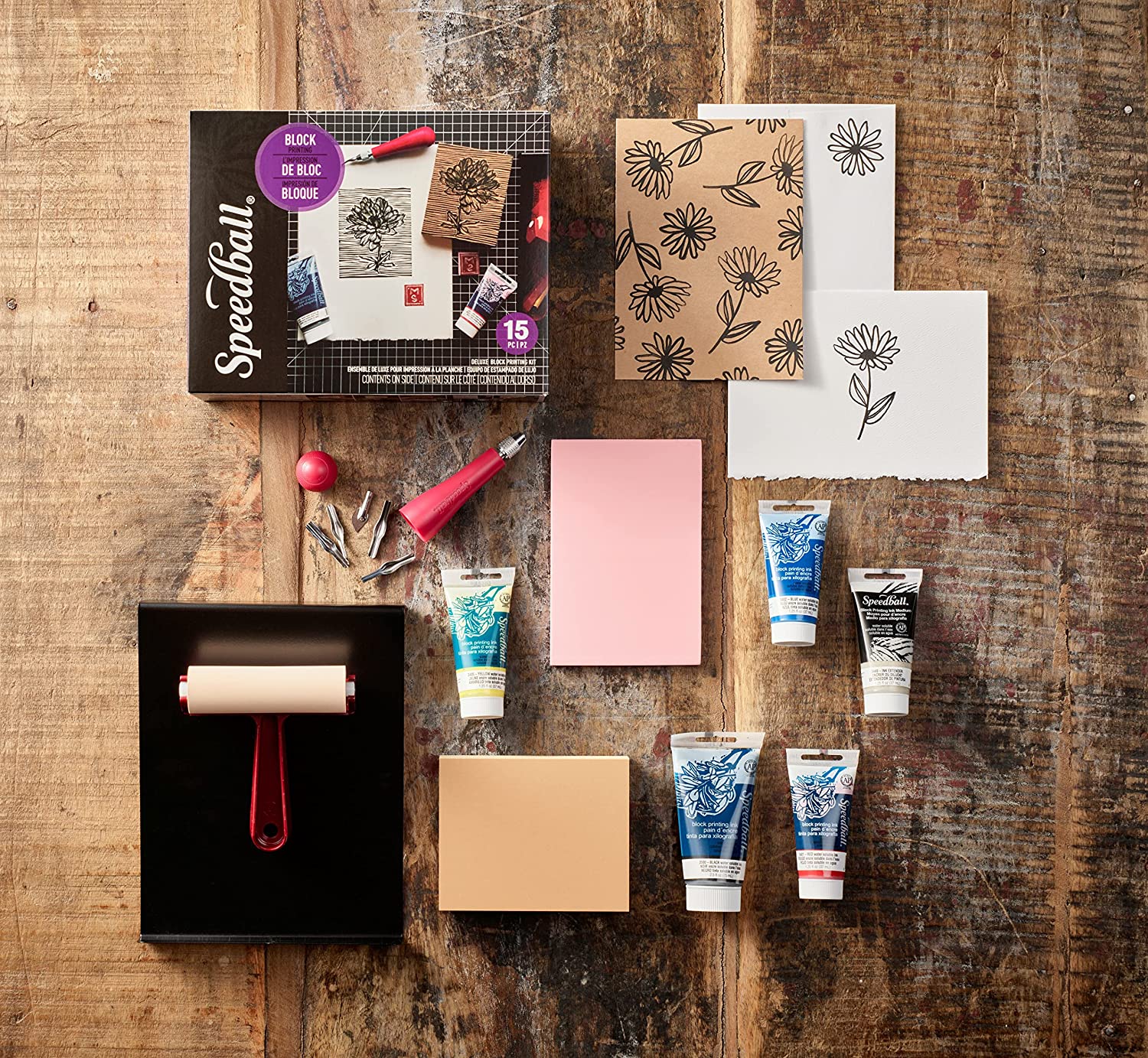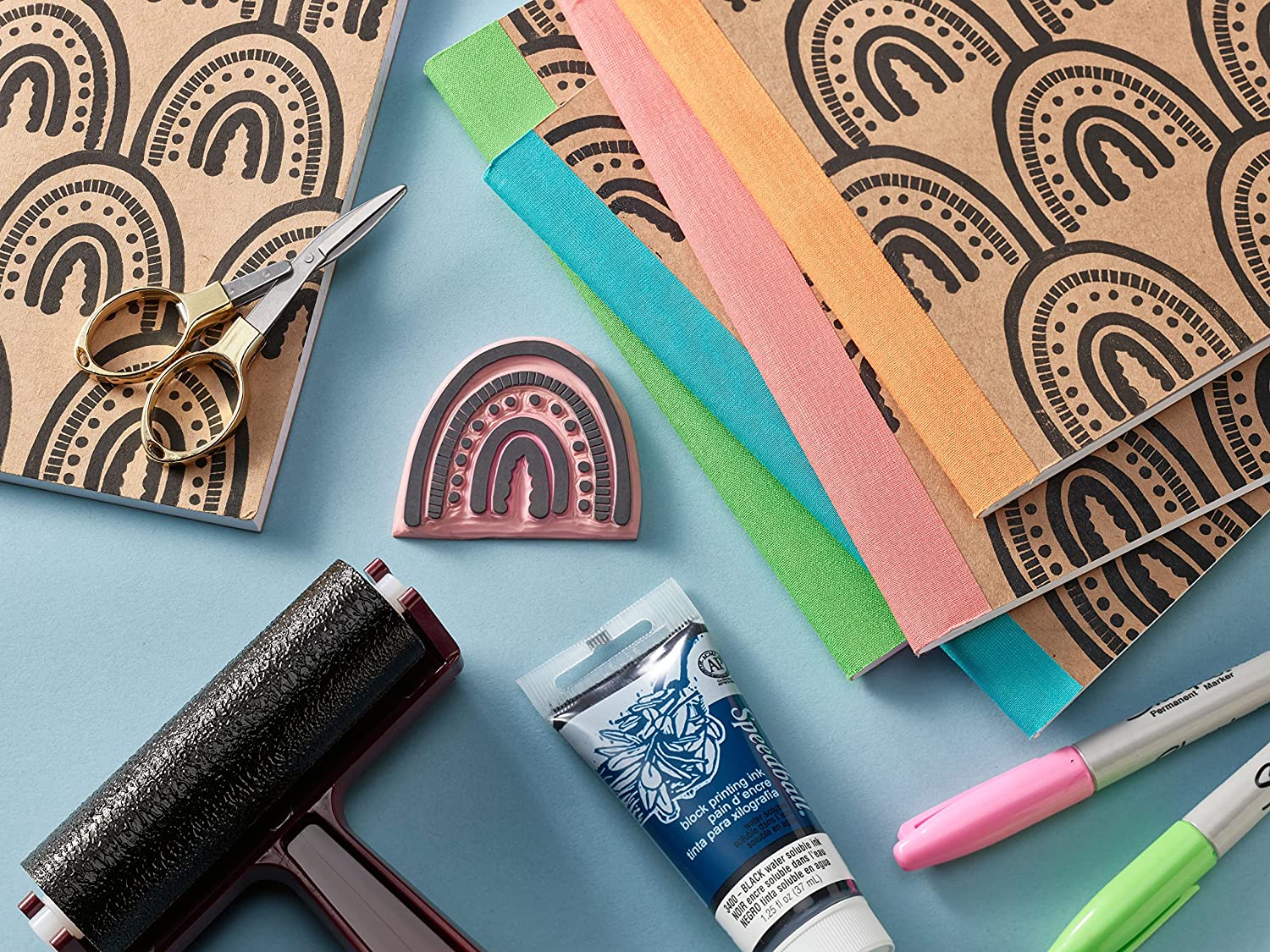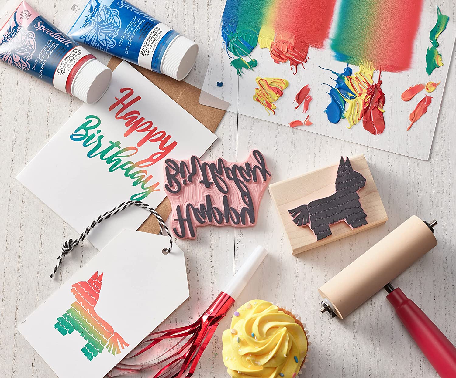 VARIETY OF PRINTING INKS – The included block printing inks (black (75cc), red, yellow and blue) are water-soluble, AP Non-Toxic and archival. Also includes water-soluble ink extender.