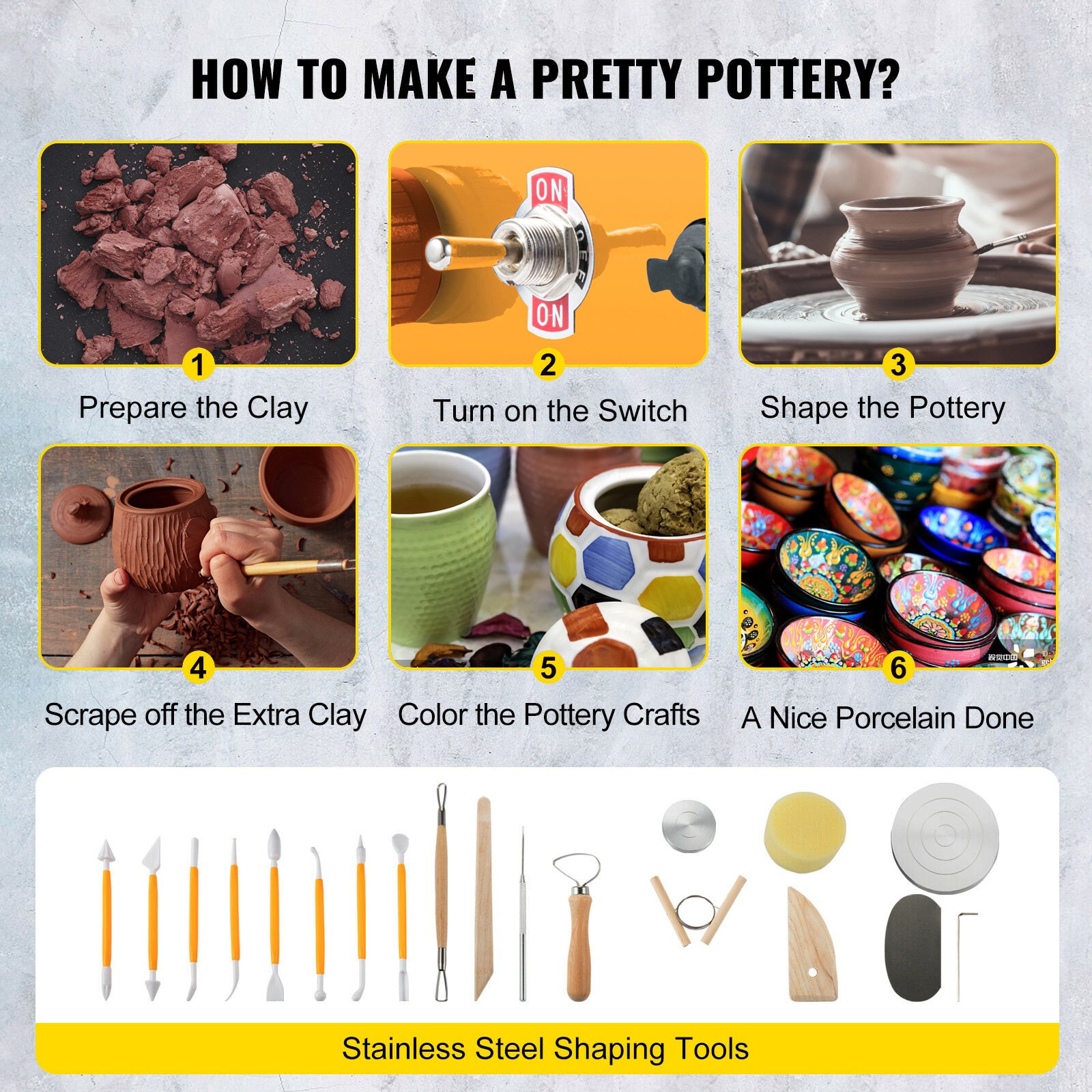 - Fully-Equipped Sculpting Tools: A set of shaping tools (16pcs tools) provided by this pottery wheel help you create your dishware, vases, and other ceramic art pieces. Meanwhile, the whole machine is fully sealed waterproof and can withstand high temperatures effectively.