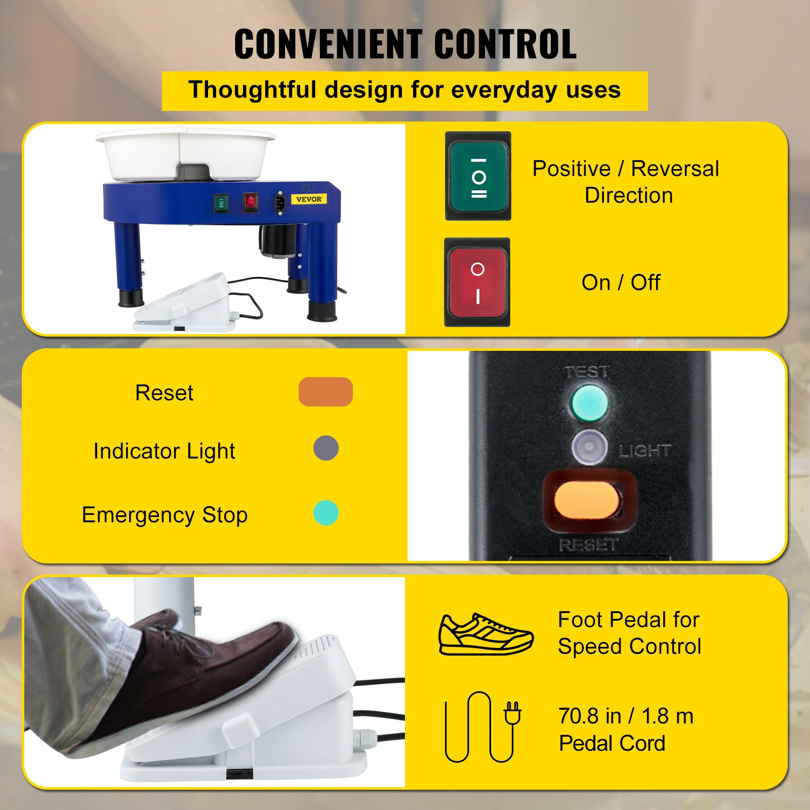 VEVOR Pottery Wheel 11in Ceramic Wheel Machine Lift Legs Foot Pedal DIY Tool Kit