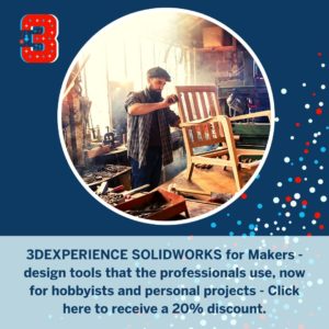3DEXPERIENCE SOLIDWORKS for Makers – design tools that the professionals use, now for hobbyists and personal projects – for only $9.99 a month or $99/year.